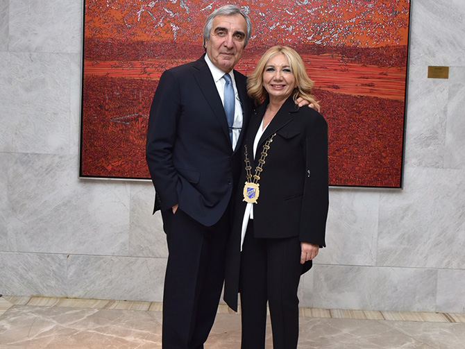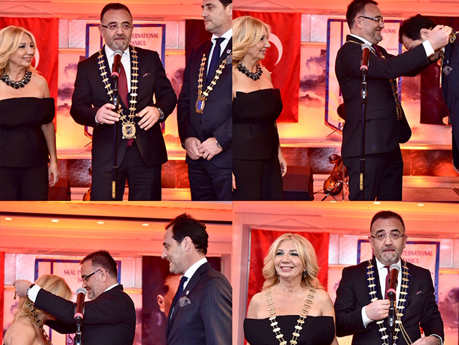 Uluslarası Skal Federasyonu Başkanı, Savas Colakoglu’nun konuşmasının ardından, yeni Dönem Başkanlığına seçilen Ayse Önen’i ve Ata Eremsoy’u Zincir Değişim Töreni için sahneye davet etti